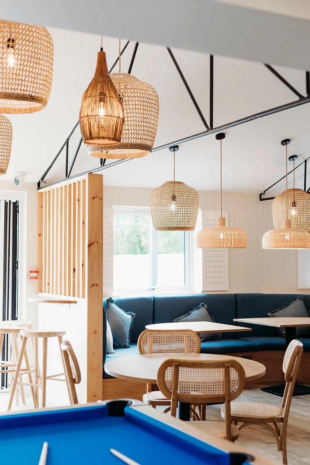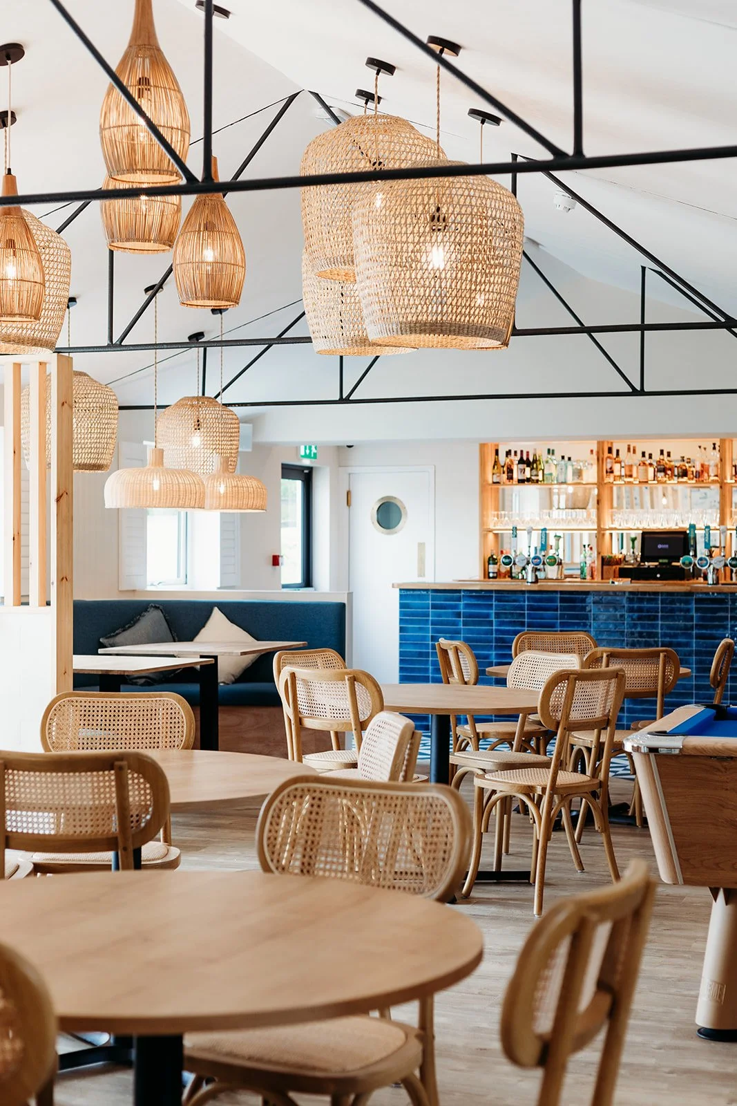 The design incorporates the campsite’s branding colours, blending them with natural textures, warm lighting, and coastal-inspired tones to create a relaxed, inviting atmosphere. Every detail was considered to turn the bar into a seaside haven where guests can gather, unwind, and enjoy their evenings.